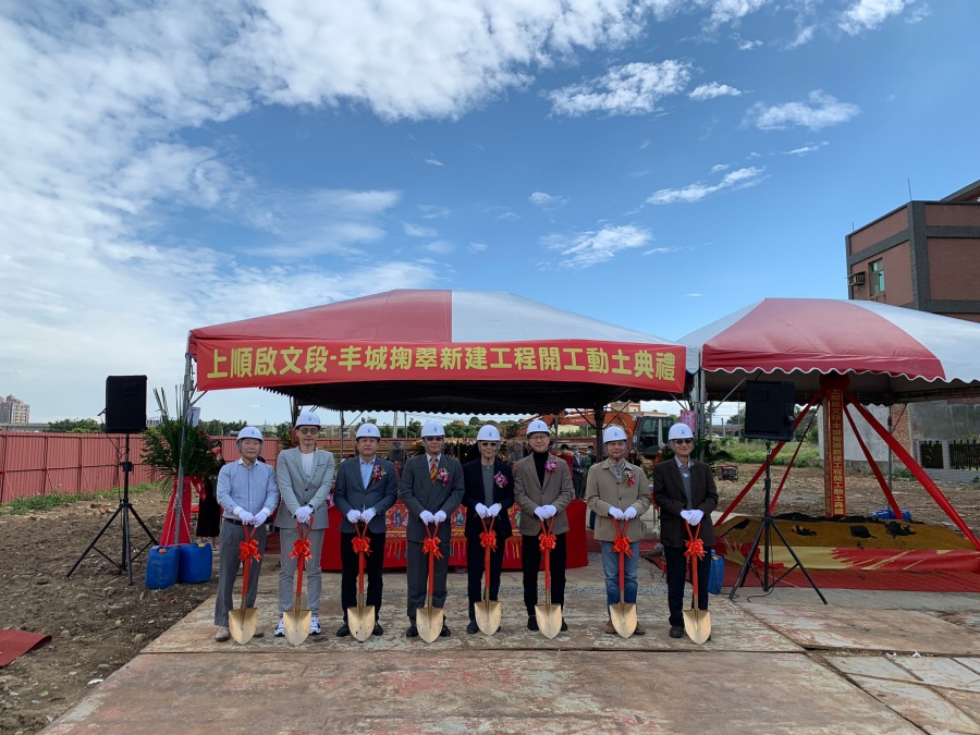 上順房屋開發董事長李南山、總經理李龍麒、執行長楊智維、建築師及影視紅星包偉銘等人共同出席「丰城掬翠」開工祈福典禮