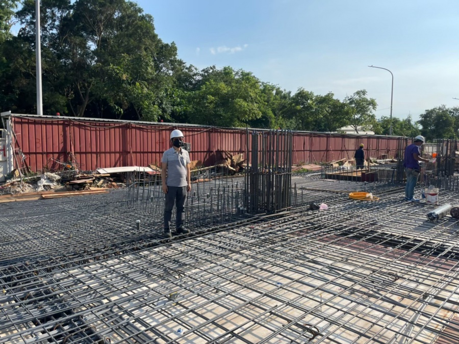 地下室完成。一樓採用結構專家戴雲發「Alfa Safe柱中柱」耐震工法,韌性較傳統工法提升近一倍